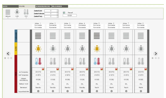 每个房间的照明、遮阳以及房间控制的参数均可以单独存储。所有参数都能够直接储存到控制箱里的控制器中,或通过网络连接单独保存到计算机中。
